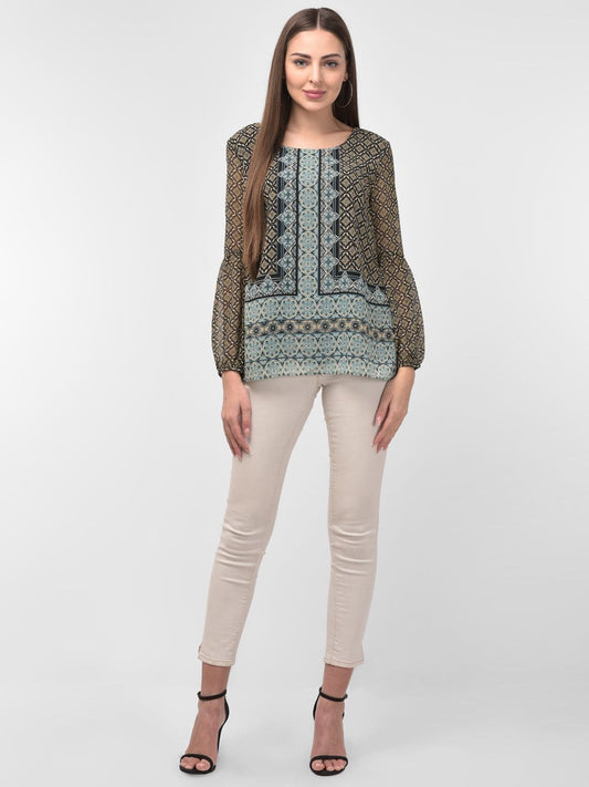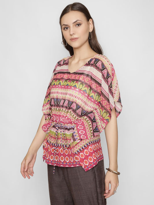 Ethnic Motifs Printed Cinched Waist Top