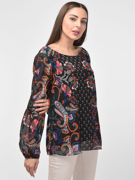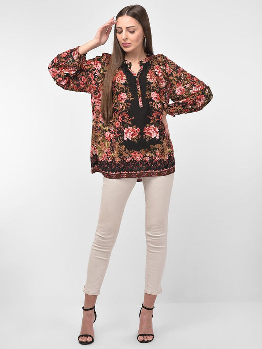Contrast Floral Printed Black Full Sleeves Top