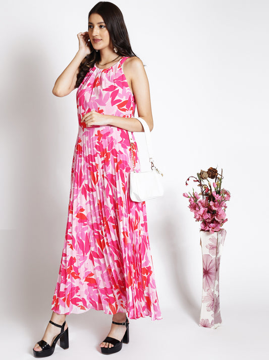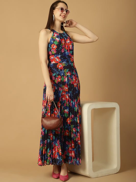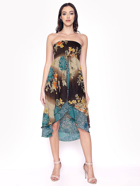 Floral Printed Asymmetric Hem A-Line Midi Dress