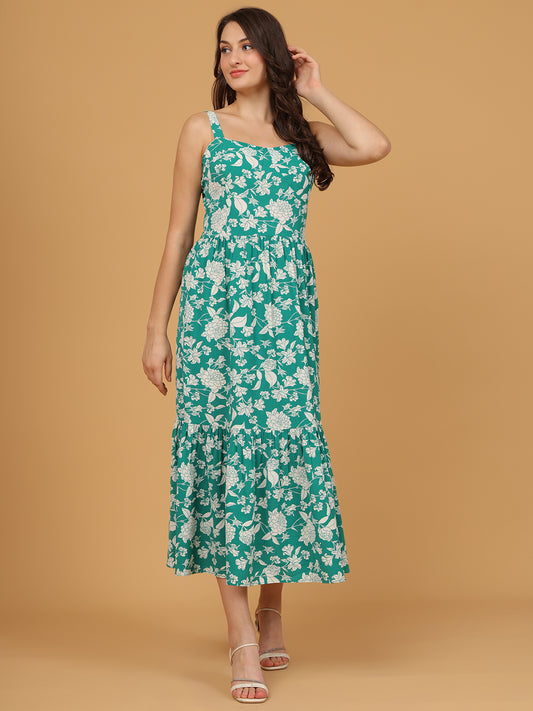 Floral Print Tie-Up Neck Fit & Flare Midi Dress