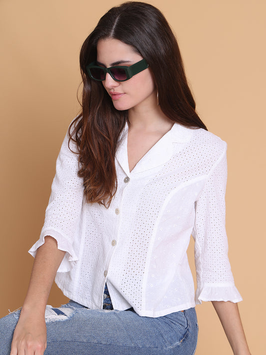 Women's White Cotton Eyelet Shirt