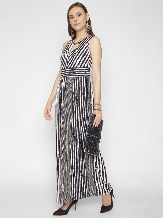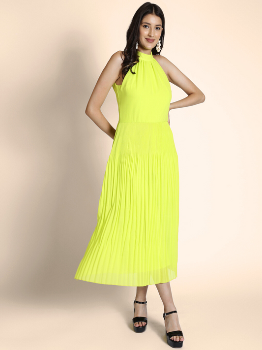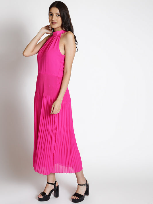 Halter Neck Georgette Pleated A-line Maxi Dress