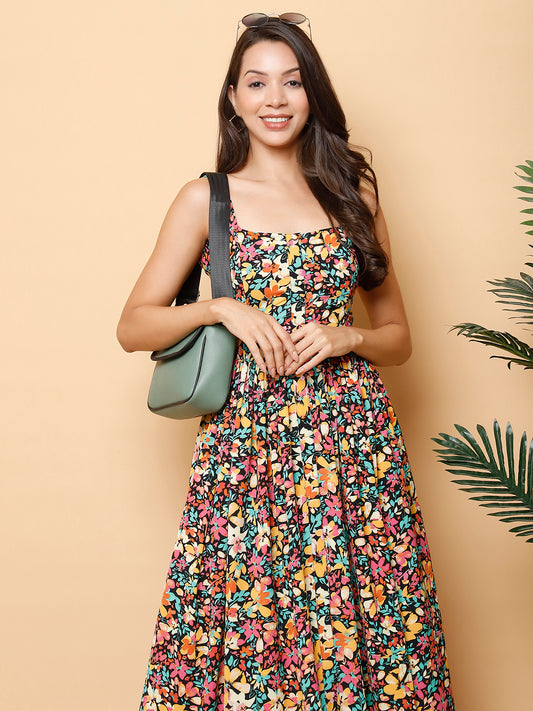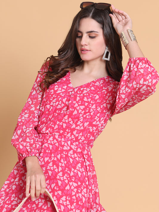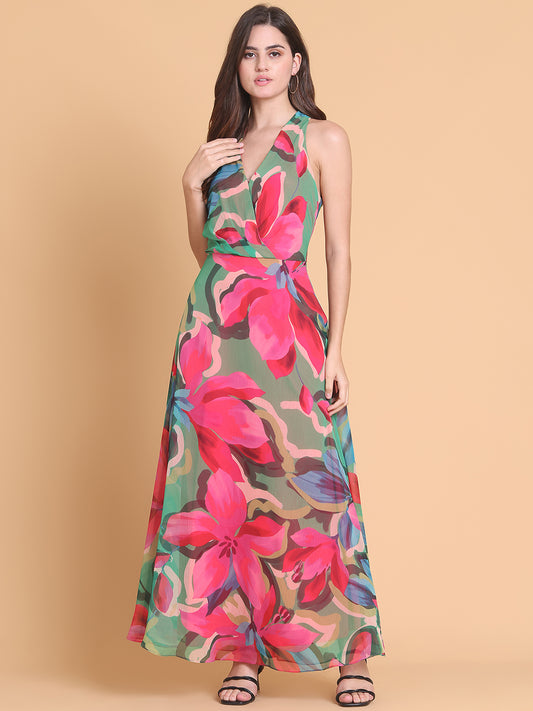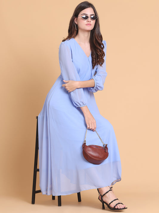 Puff Sleeve Georgette Fit & Flare Maxi Dress