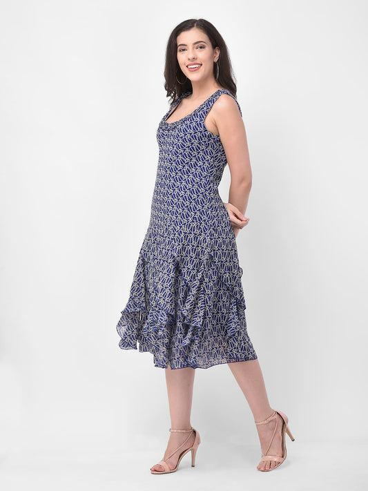 77% OFFBlue Printed A-Line Midi Dress