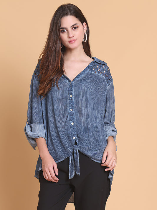56% OFFCotton Blend Lace-Shoulder Shirt